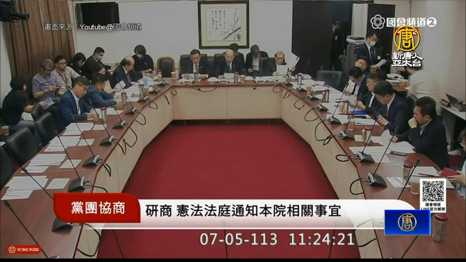 再來看到,針對國會改革法案,民進黨立院黨團、總統、行政院、監察院分別向大法官聲請釋憲與暫時處分,憲法法庭將在7月10日開庭,立法院長韓國瑜今天5日召集朝野黨團協商,討論立法院3位訴訟代理人名單。不過朝野協商1個多小時沒有共識,原本朝野下午將進行表決大戰,最後民進黨團讓步,同意由國民黨團推薦2位、民眾黨團推薦1位,民進黨團幹事長吳思瑤說明,因為他們難以接受國民黨打算以臨時報告事項,將原本沒有列在院會報告事項的議程列入,如此一來將開了強行表決的惡例,因此同意不派人,但他們對釋憲案有信心。 //asset1.ntdtv.com.tw/public/uploads/assets/2024/07/05/2024-07-05-6687e3945a2e1.mp4 國會改革|憲法法庭|釋憲|朝野協商|訴訟代理人|國會擴權|藐視國會罪2024-07-05 20:14:12