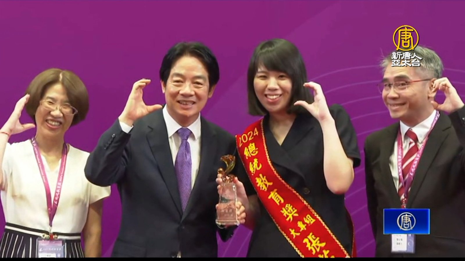 歡迎回來。2024總統教育獎,今天在總統府舉辦頒獎典禮,由總統賴清德親自頒發獎座給56位學生,並肯定獲獎者克服人生逆境向上,讓大家看見生命的光輝。 //asset2.ntdtv.com.tw/public/uploads/assets/2024/07/05/2024-07-05-6687e02851e6c.mp4 總統教育獎|賴清德|林易|曾羽瑄2024-07-05 20:52:03