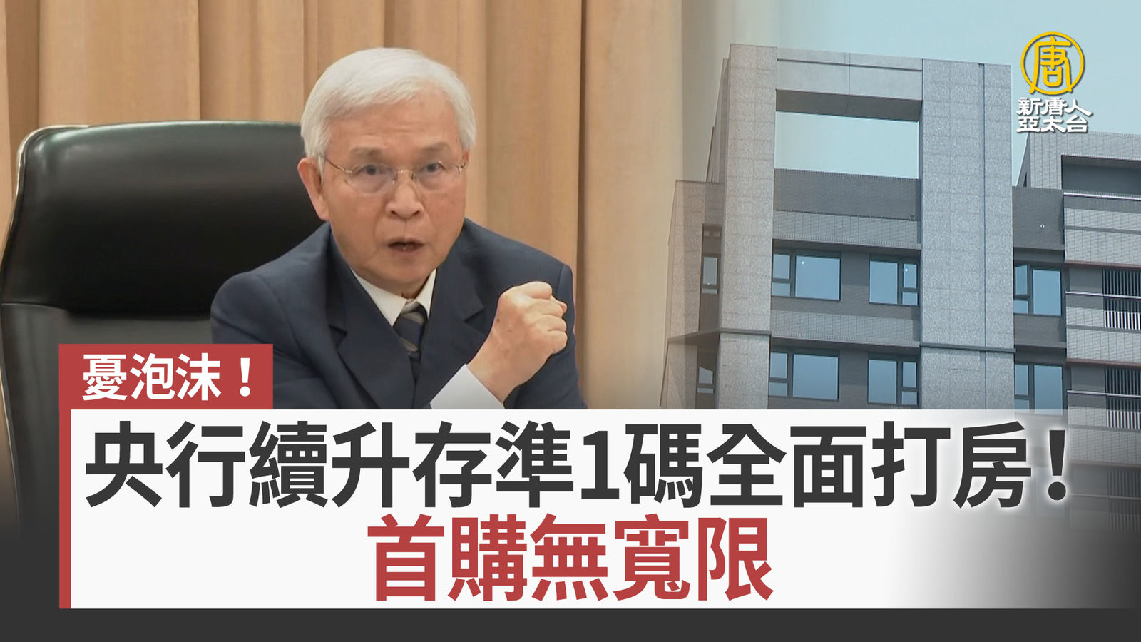憂泡沫!央行續升存準1碼全面打房!首購無寬限
