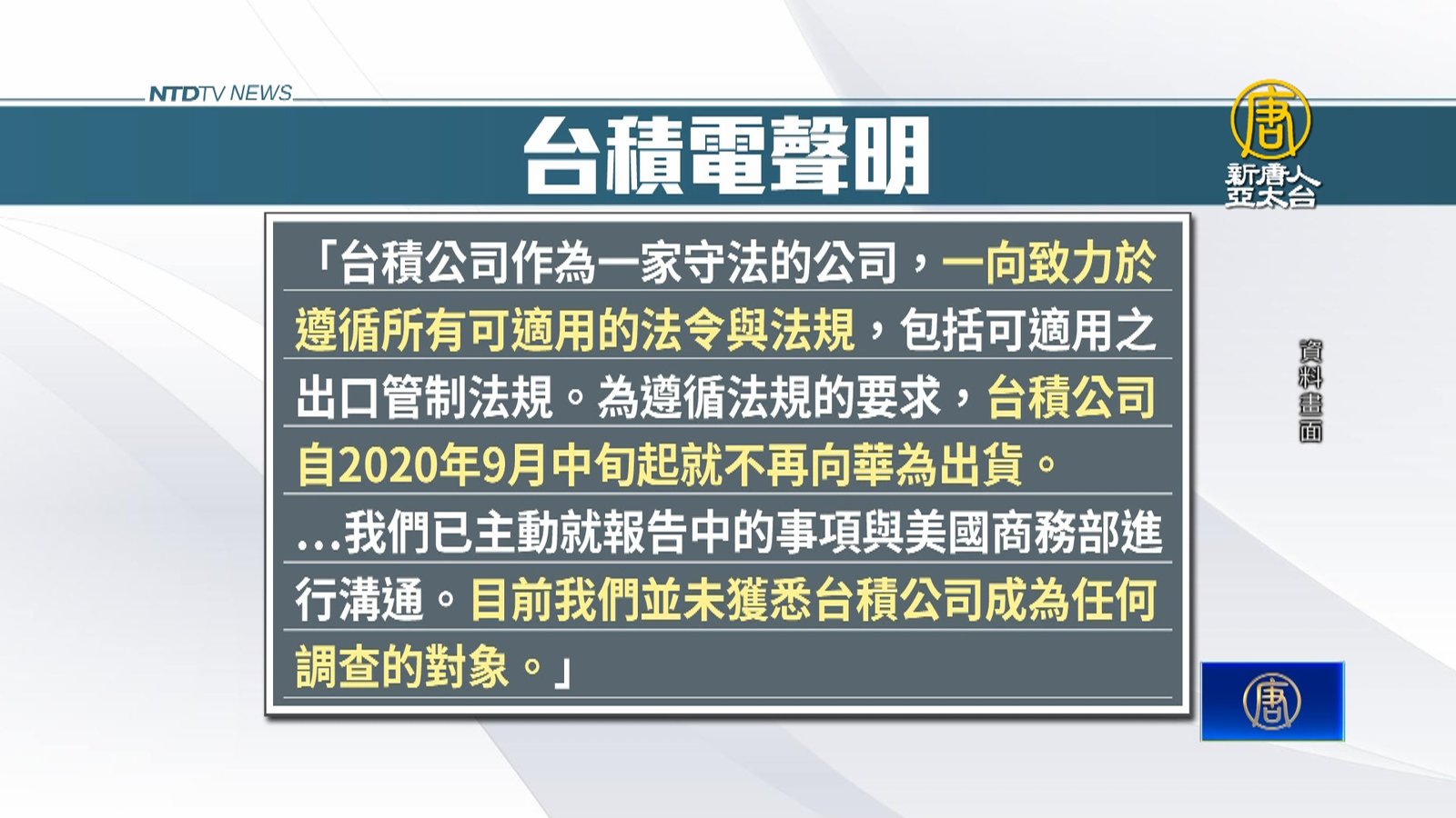 台積電本月發現,為特定客戶生產的晶片,落入中國華為公司手中,強調已在10月中旬停止服務該客戶,並主動向美國商務部說明,對此,行政院回應有密切分享訊息,台灣也會持續跟國際合作,確保供應鏈的韌性。 //www.ntdtv.com.tw/public/uploads/assets/2024/10/24/2024-10-24-671a38b75640f-220x123-169.jpg 台積電|華為|晶片管制|行政院2024-10-24 20:21:11