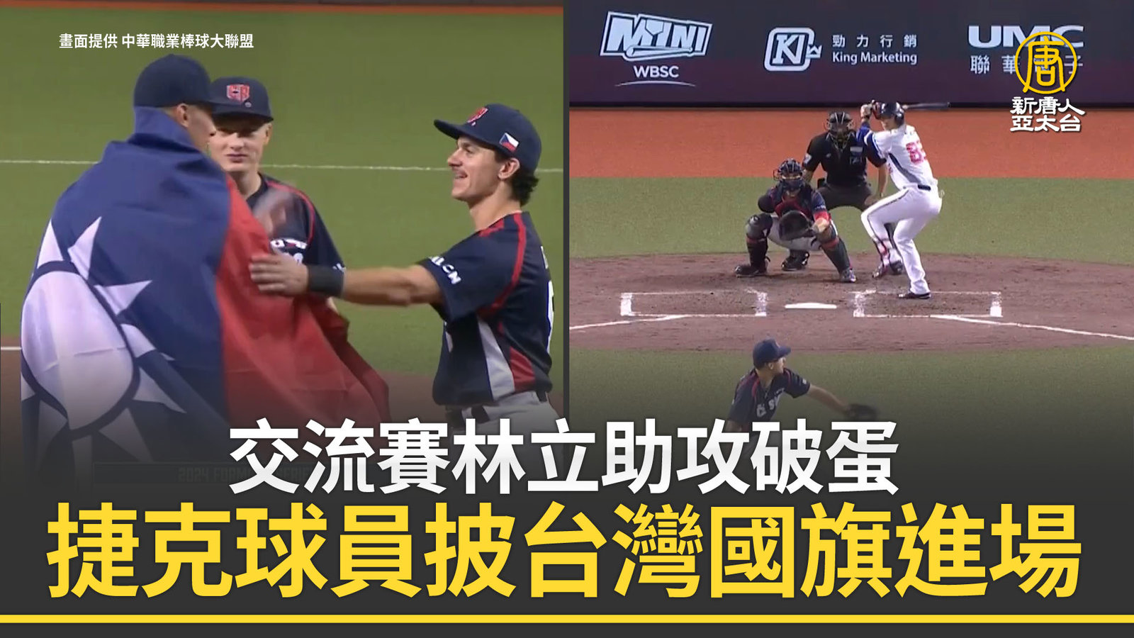 帶您看到,為世界12強棒球賽備戰,中華職棒特別邀請捷克國家隊週末兩天進行熱身交流賽,第一場今天(2日)下午五點開打,目前8局下半,台灣與捷克比數來到1比2,在一局上,捷克第四棒首打席就用一支兩分砲向台灣球迷打招呼,讓捷克首局以2比0領先,不過在3局下,中華隊第一棒林立長打助攻破蛋,落地二壘安打1分打點,讓台灣將比數拉到1分差距。 //www.ntdtv.com.tw/public/uploads/assets/2024/11/02/2024-11-02-672612db2371d-220x123-169.jpg 世界12強棒球賽|台灣|捷克2024-11-02 19:55:19