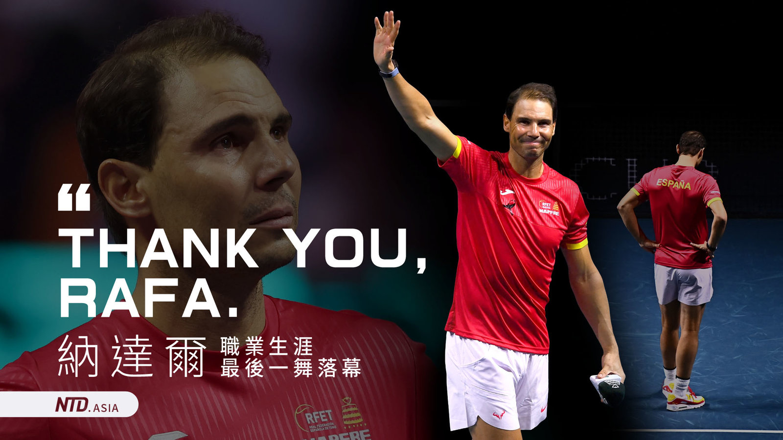 網壇四大天王之一,被稱為「蠻牛」的西班牙網球好手納達爾,正式告別職業網球!他在西班牙於台維斯盃8強止步後,正式結束長達23年的職業生涯,他含淚與上萬名觀眾道別。納達爾生涯贏得92個單打冠軍、63個紅土單打冠軍、36個大師賽冠軍、22座大滿貫冠軍,5次年終排名第1,還有2枚奧運金牌。納達爾的好友選手費德勒,發文向他致敬,表示納達爾是場上是最好的對手、在場下也是最好的朋友。自己永遠支持他,也期待看到他退休後的新人生。 //www.ntdtv.com.tw/public/uploads/assets/2024/11/20/2024-11-20-673dd5bb400f6-220x123-169.jpg 納達爾2024-11-20 20:32:03