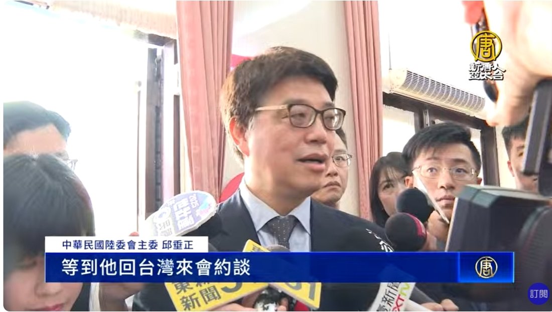 國民黨前大陸事務部主任黃清賢,前往中國參加中共的座談會,還表態支持反分裂法。陸委會主委邱垂正今天(25日)表示,等黃清賢回台後會進行約談,如果他有在中國大陸設籍,就會依法註銷他的台灣身分和戶籍。 //www.ntdtv.com.tw/public/uploads/assets/2025/03/25/2025-03-25-67e2368c1b504-220x124-500283.jpg 邱垂正|黃清賢2025-03-25 13:11:13