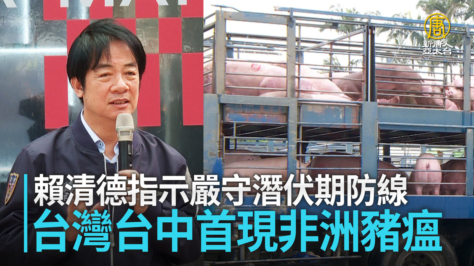 台灣台中首現非洲豬瘟 賴清德指示嚴守潛伏期防線