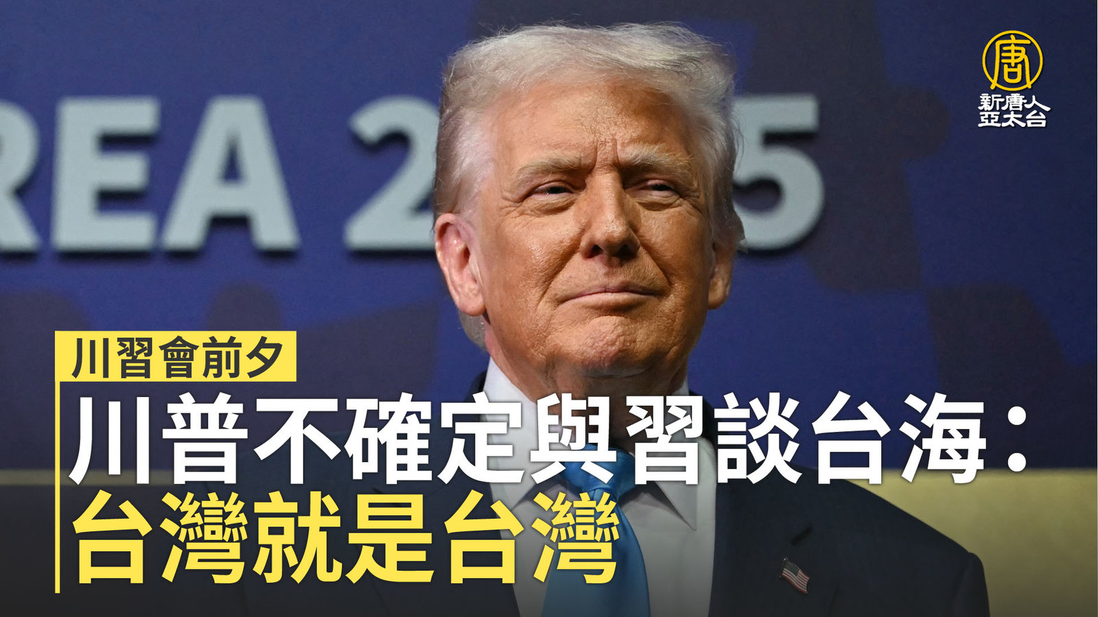 川習會即將在明天周四舉行,今天川普在空軍一號專機,面對記者提問,川普認為跟中共黨魁,不確定會否談到台海,因為沒什麼好問的;川普直言,台灣就是台灣。 //www.ntdtv.com.tw/public/uploads/assets/2025/10/29/2025-10-29-6902028aed1a6-220x123-169.jpg 川普|亞洲|台灣|日本|韓國|中共|川高會|川習會|郭雅慧|蔡明彥|彭慶恩2025-10-29 20:36:07