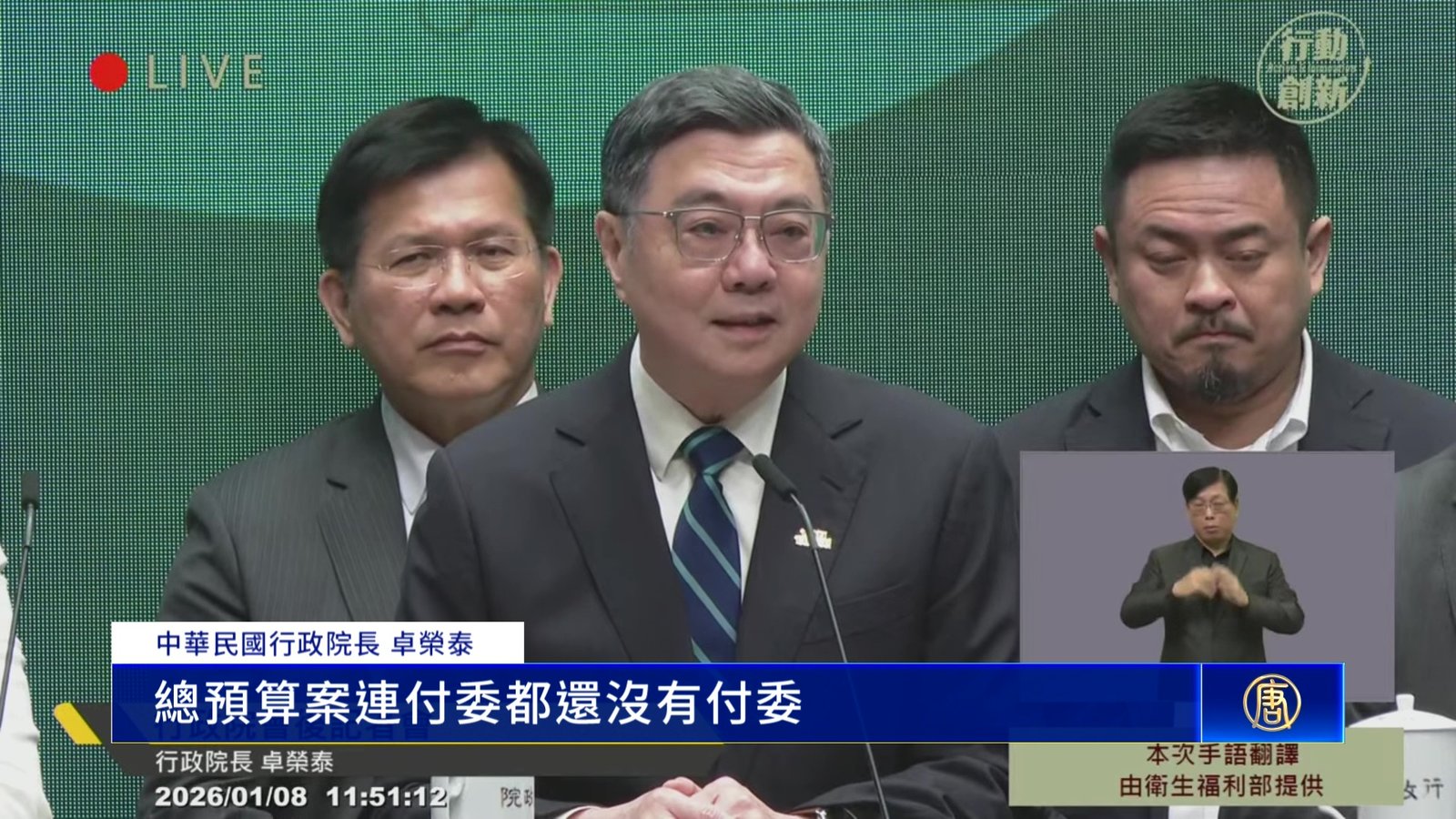 新年新氣象,不過台灣今年度的中央政府總預算,目前還躺在立法院,無法進入委員會審查。行政院長卓榮泰,憂心忡忡,今天大動作請12個部會出面,說明相關衝擊,促請立法院儘速審議。 //www.ntdtv.com.tw/public/uploads/assets/2026/01/08/2026-01-08-695f9a0247e30-220x123-169.jpg 中央政府總預算|卓榮泰|GDP|國防部|AI新十大建設2026-01-08 20:09:54