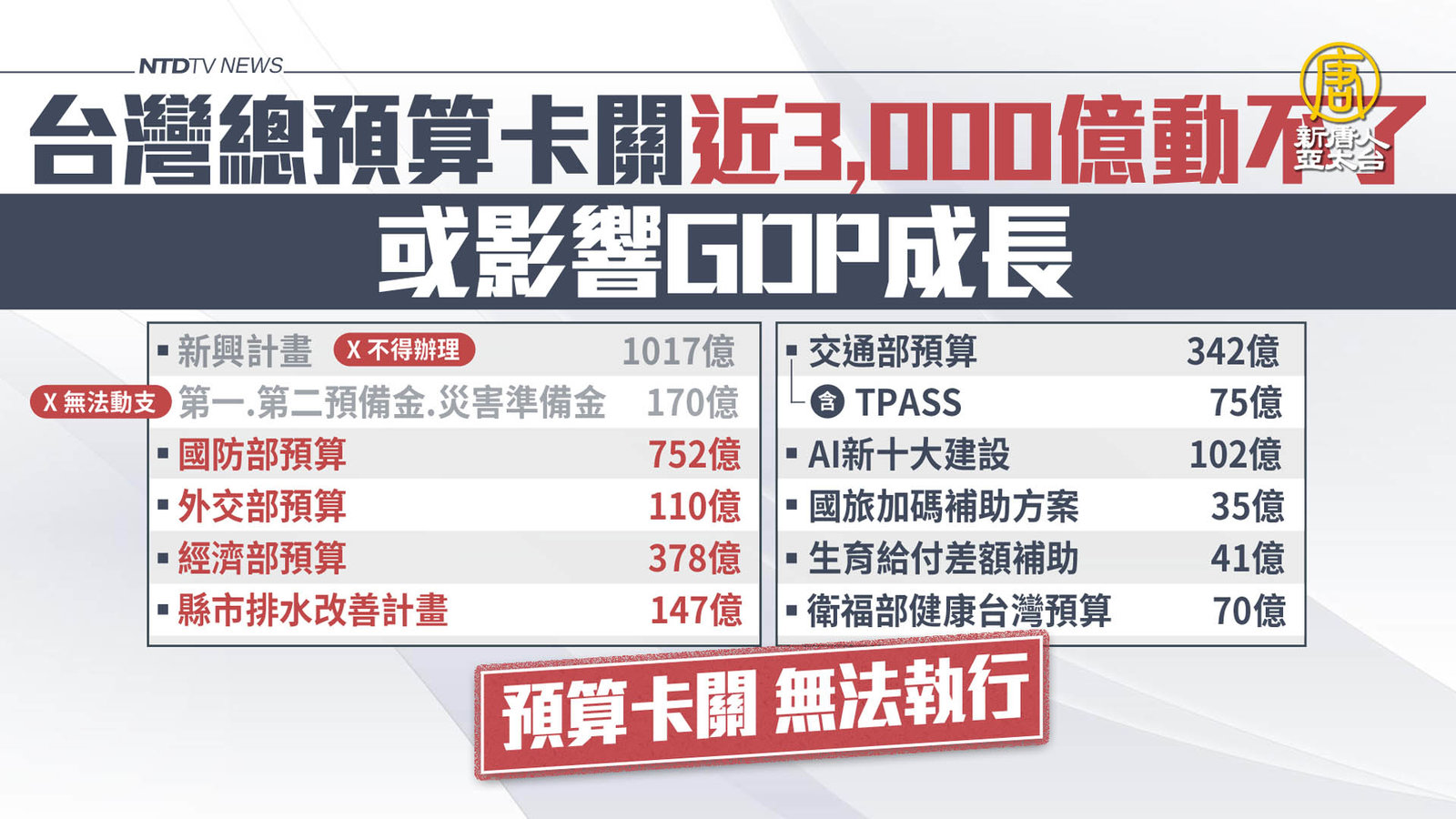 台灣總預算卡關近3千億動不了 或影響GDP成長