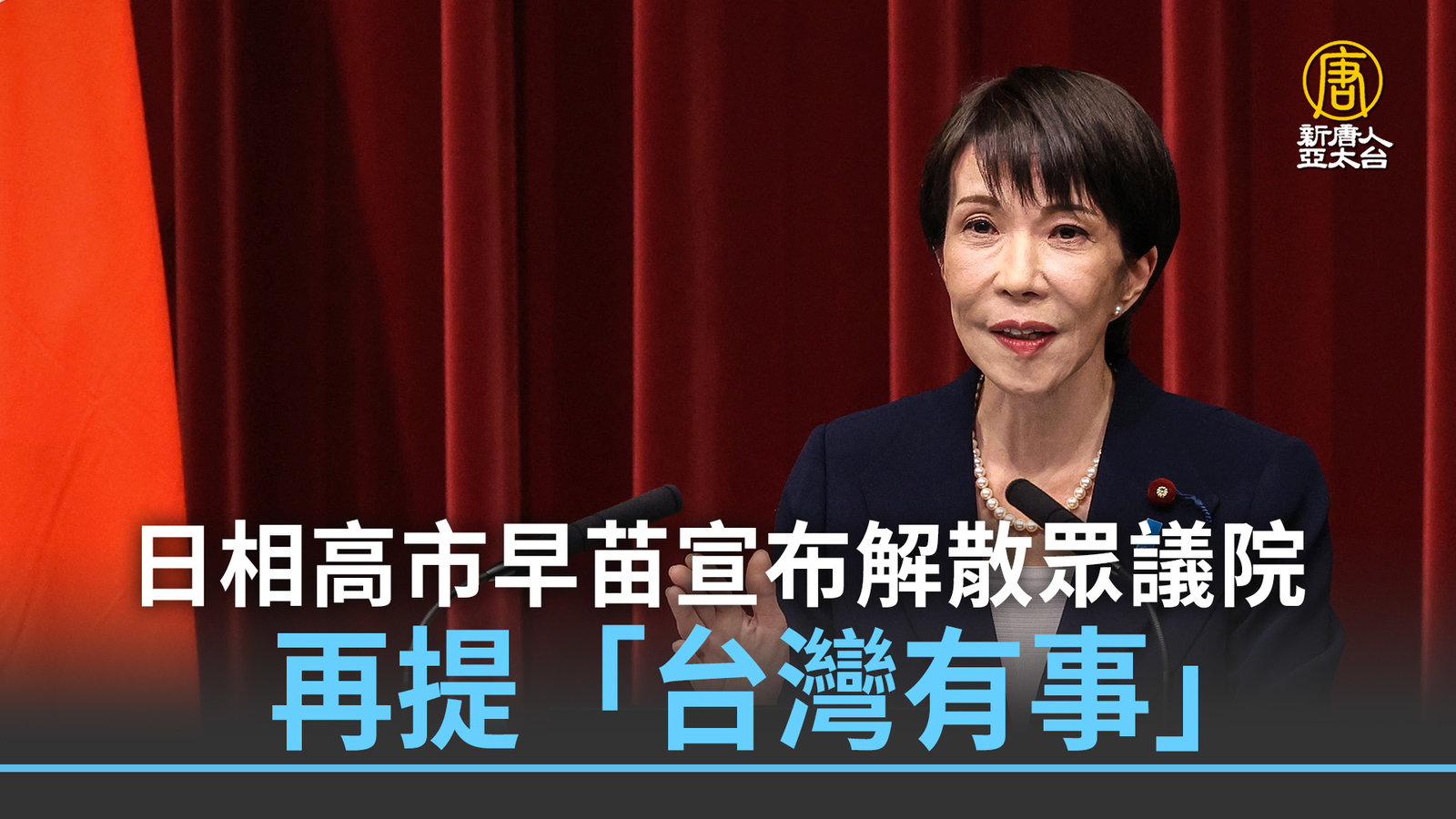 再來關心,日本首相高市早苗今天(19日)宣布將解散國會,提前大選。她在當地時間下午6點召開記者會,正式宣布1月23日解散國會眾議院。也為了避免影響眾議院審查政府總預算案,選舉將在下週27日公告,在2月8日投開票。目前,執政的自民黨派系在眾議院擁有199席次,與維新會組成的執政聯盟,合計233席,剛好過半,只要少一席就會跌破半數門檻。高市早苗強調,這次選舉目標是「執政黨取得過半數」,她將以首相職位的去留作為賭注。同時高市也再次提及「台灣有事」,指共軍在台灣周邊軍演,且以經濟脅迫手段威逼他國。日本正面臨非常嚴 //www.ntdtv.com.tw/public/uploads/assets/2026/01/19/2026-01-19-696e1c83173b8-220x123-169.jpg 高市早苗|解散眾議院2026-01-19 20:53:25
