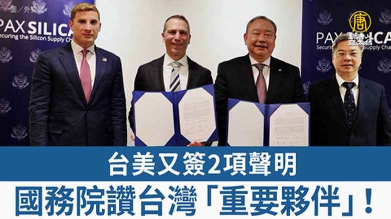 繼1月中旬,美台達成關稅協議後,美台27號,簽署兩項聲明。27號,美國國務院 主管經濟事務的次卿 海柏格,與中華民國經濟部長龔明鑫,以實體方式在華府進行「美台經濟繁榮夥伴對話」。兩人共同見證,美國在台協會(AIT)與駐美台北經濟文化代表處(TECRO),簽署「矽和平宣言」及「美台經濟安全合作」。美國國務院表示,會談聚焦供應鏈安全一致性交流,包括確保AI整體技術鏈各層的供應鏈安全、支持可信賴的數位基礎建設、合作促進無人機系統零組件認證,以及關鍵礦產合作。美國國務院指出,「台灣在AI與半導體,及其他重要經濟倡 //www.ntdtv.com.tw/public/uploads/assets/2026/01/28/2026-01-28-6979fc82d979f-220x123-169.jpg 美國|台灣|龔明鑫2026-01-28 20:21:29