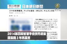 2015-03-05 07:01:37來看到日本朝日新聞報導:2014第四期智慧手機世界銷量 蘋果隔3年再居首