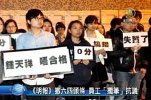 2015-02-04 07:14:59香港《明報》總編輯鍾天祥日前臨時撤換「六四密件」頭條,換成「阿里巴巴」,引發員工不滿。明報職工協會昨日傍晚發起「擱筆」行動抗議,多名員工到報社門口放下筆桿,以示捍衛新聞自由,並要求鍾天祥解釋撤換頭條原因。結果《明報》昨天深夜即時新聞刊登一篇鍾天祥署名的聲明,強調自己有權力及責任調動版面,有關「六四密件」原文並未作任何修改,並於顯著位置刊出。不過香港記協,對《明報》改頭條事件已經表示關注。
