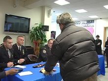 2012-02-25 09:18:11紐約華埠商家與警方溝通名牌商品打假事宜。 ,紐約華埠商家與警方面談名牌打假