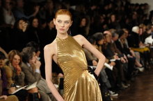 2012-02-17 21:18:08拉爾夫•勞倫以黑色、金色、古銅色、紫紅色及橄欖綠色點綴著他的伸展臺。 ,紐約時裝週壓軸-勞倫「唐頓莊園」時裝
