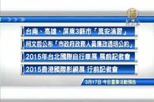 2015-03-17 07:27:09接著看到,今天,三月17日,星期二,有哪些重要活動,今天下午1點30分到2點,在台南、高雄、屏東3縣市有「萬安演習」警報發放;上午,台北市長柯文哲公布「北市府政務人員廉政透明公約」,財經消息,2015年台北國際自行車展的展前記者會,藝文娛樂部分,今天多位導演將出席,2015香港國際影視展 行前記者會。
