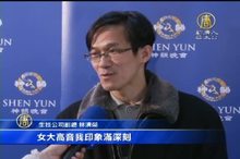 2014-03-21 21:21:54鏡頭轉到美國,美國神韻紐約藝術團正在加州精彩上演,吸引了各界人士前往觀賞,其中不乏大學教授,他們讚賞神韻的美麗如畫,感嘆神韻的美好將世代永存。