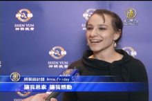 2014-03-28 21:19:41鏡頭來到德國,美國神韻世界藝術團3月26日晚間在柏林波茨坦廣場劇院的最後一場演出圓滿落幕。擁有自創時裝品牌的設計師弗萊德女士被神韻絕美的舞臺效果徹底征服, 晚會所傳遞的信息和內涵令她回味無窮。