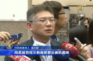 台灣課綱微調爭議持續,日前台北市長柯文哲談到,總統與行政院長都應做出表態 ,今天上午毛治國以公務為由,並未接受媒體訪問,改由政院發言人孫立群對外說明,並表示,已經指示教育部,應妥善處理,持續與學生溝通。