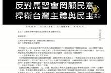 2015-11-08 20:11:41馬習會落幕,而台灣在海外的留學生,今天發起一項連署,表示反對馬習會罔顧民意,要求捍衛台灣主體與民主。包括美國、加拿大、澳洲及日本的台灣留學生團體,發表四點聲明,指馬英九總統在缺乏社會普遍共識與民意授權基礎下,逕自進行重大外交行為,罔顧民意,傷害台灣民主。