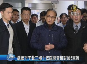 2017-02-15 17:40:08好,根據國道車禍的最新調查,分析遊覽車記錄器,失事車輛的車速達60公里,相當於超速20公里;行政院長林全昨天晚間前往醫院探視傷者,今天,行政院也將召開國五車禍檢討會 。