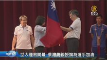 2017-08-12 14:34:23台北世大運下週六就要開幕,總統蔡英文今天到高雄左營國訓中心,授旗給代表團,勉勵選手們全力以赴,拿出最好的表現。代表台灣出征的371名選手也蓄勢待發,要發揮主場優勢,把獎牌留在台灣。