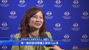 2018-02-26 22:20:51美國神韻國際藝術團,星期六在台北的第四場演出,吸引名流菁英,教育基金會董事長 張宜玲細數節目中的色彩、舞蹈,她說台下所有人都跟著節目情緒起伏,感動落淚,神韻是重要善的力量。