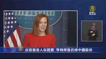 2021-02-08 10:03:18美國白宮新聞發言人莎琪,2月5日被問及,總統拜登兒子,韓特拜登,仍持有中國公司10%的股份時,莎琪沒有否認。